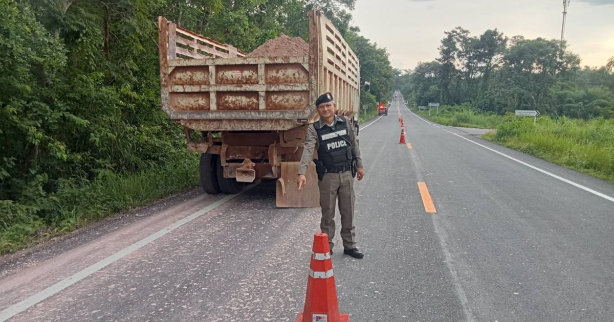 วันที่ 23 ก.พ. 2568 เวลาประมาณ 09.30 น. ร.ต.อ.สง่า ศรีกันหา รอง สว.(สส.)สภ.บุ่งคล้าร้อยเวร 20 พร้อมด้วยเจ้าหน้าที่ตำรวจชุดสายตรวจประจำวันนี้ ได้ร่วมกันจับกุมผู้ต้องหา 1 ราย โดยกล่าวหาว่า เป็นผู้ขับขี่รถซึ่งบรรทุกมูลสัตว์ กรวด หิน ดิน เลน ทราย มูลฝอย หรือมีน้ำมัน และวัตถุดังกล่าวได้ตก หล่น ปลิว ฟุ้งกระจาย หรือรั่วไหลลงบนถนน